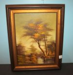 834 Oil Painting Of Creek Signed Denton 16"w., 20"h.