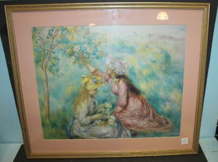 Contemporary Print of Young Girls Picking Flowers by Renoir 25"w., 21"h. Contemporary Print of Young Girls Picking Flowers by Renoir 25"w., 21"h.