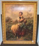 861 Contemporary Copy of Oil Painting of the Shepherdess by Original Artist Hofner original was painted in the 19th century, 20"w., 26"h.