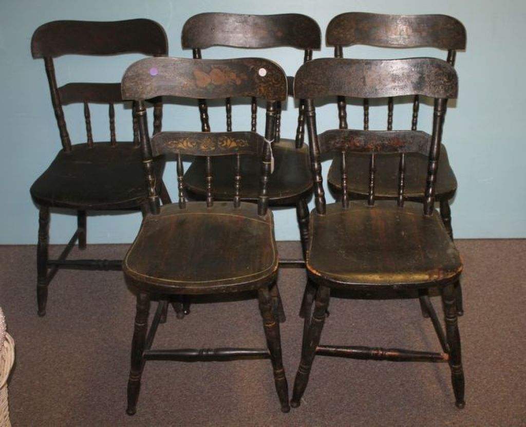 Five Early Chairs with stenciling Five Early Chairs with stenciling