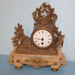 1076 Victorian Alabaster and Brass Ornate Mantel Clock Victorian Alabaster and Brass Ornate Mantel Clock, 10"w., 11"h.