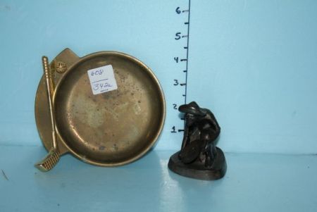 1105 Brass Dish with Golf Club and a Bronze Figure of a Man Panning for Gold Brass Dish with Golf Club and a Bronze Figure of a Man Panning for Gold