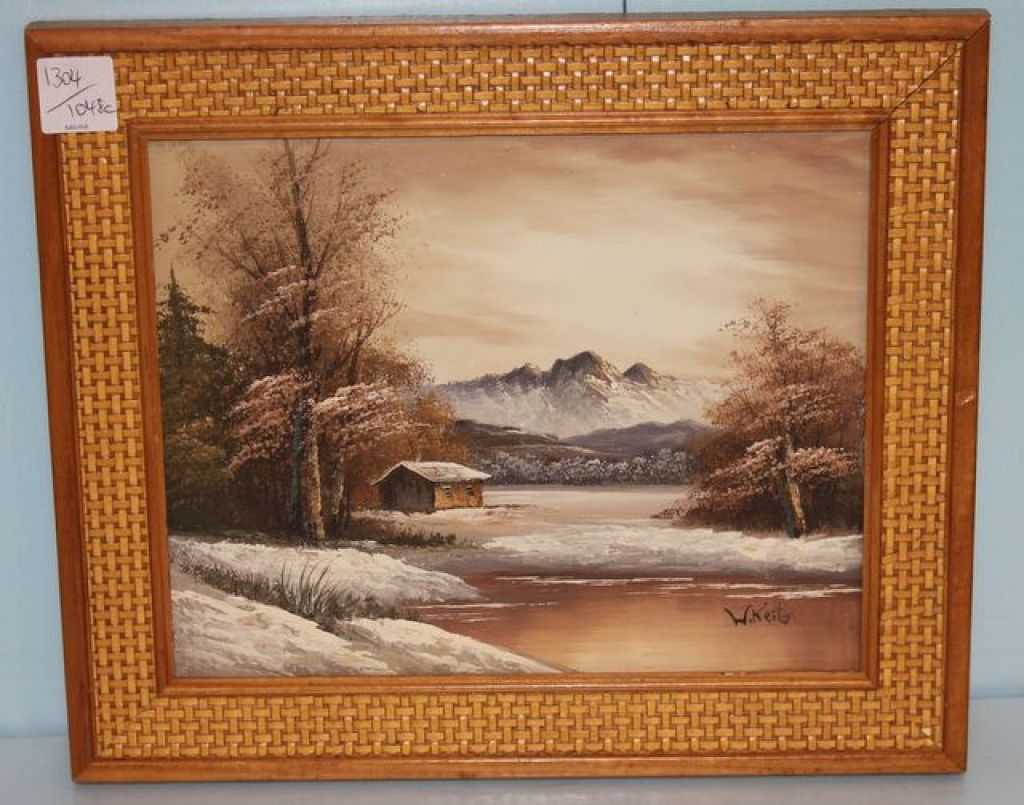 Small Oil on Board with Winter Lake and Mountain Scene Small Oil on Board with Winter Lake and Mountain Scene; 12 1/2" w., 10 1/2" h. Small Oil on Board with Winter Lake and Mountain Scene Small Oil on Board with Winter Lake and Mountain Scene; 12 1/2" w., 10 1/2" h.