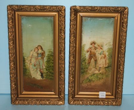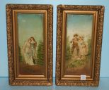 Pair of Small Oil Paintings of Courtship Scenes Pair of Small Oil Paintings of Courtship Scenes; 8" w., 15" h. Pair of Small Oil Paintings of Courtship Scenes Pair of Small Oil Paintings of Courtship Scenes; 8" w., 15" h.