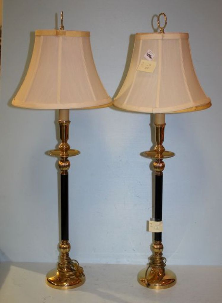 Contemporary Brass and Metal Candlestick Form Lamps Contemporary Brass and Metal Candlestick Form Lamps; 35" h. Contemporary Brass and Metal Candlestick Form Lamps Contemporary Brass and Metal Candlestick Form Lamps; 35" h.