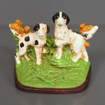 1358 Iron Door Stop Depicting Two Bird Dogs Description: Iron Door Stop Depicting Two Bird Dogs; 6 1/2" w., 6" h.