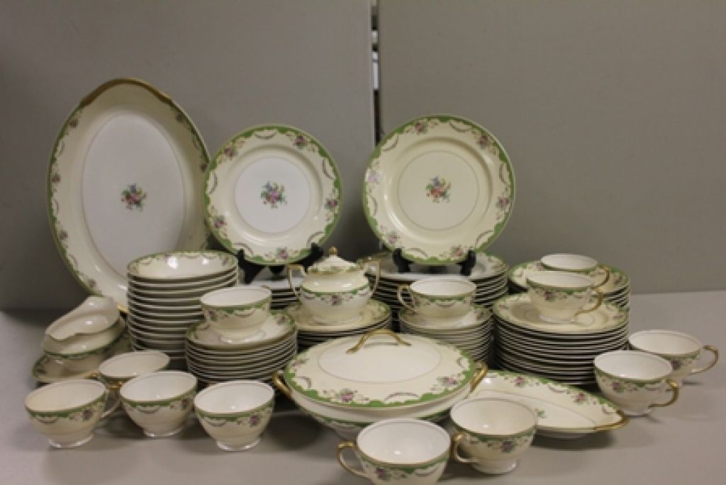 1369 Warwick China Set Description: 106 pc. Set of Warwick China Set (some small chips on cups)