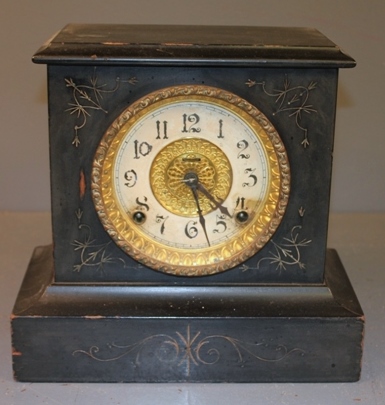 1390 Wizard Eight Day Half-Hour Strike Clock Description: Wizard Eight Day Half-Hour Strike Clock, cathedral gong and patent regulator; 10" h., 10 1/2" w.