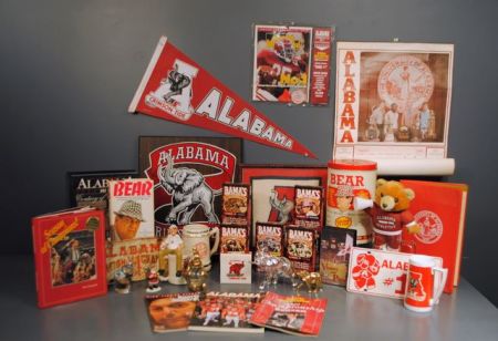 Alabama Football Collectibles - Amazing Collection Description: Includes 1973 Champion tag and metal 1964-65 champions tag. Also rare Bear Bryant Golden Flake tin and many more items. Alabama Football Collectibles - Amazing Collection Description: Includes 1973 Champion tag and metal 1964-65 champions tag. Also rare Bear Bryant Golden Flake tin and many more items.