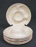 Set of Six Cream Colored Dishes Description: Set of Six Cream Colored Dishes; possibly dip trays, flower/leaf design; 9 1/2" dia. Set of Six Cream Colored Dishes Description: Set of Six Cream Colored Dishes; possibly dip trays, flower/leaf design; 9 1/2" dia.