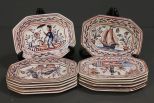 1514 Set of Twelve Hand Painted Outeiro Agueda Plates Description: Set of Twelve Hand Painted Outeiro Agueda Plates; 6 1/2" l., 4 1/2" w., some damaged