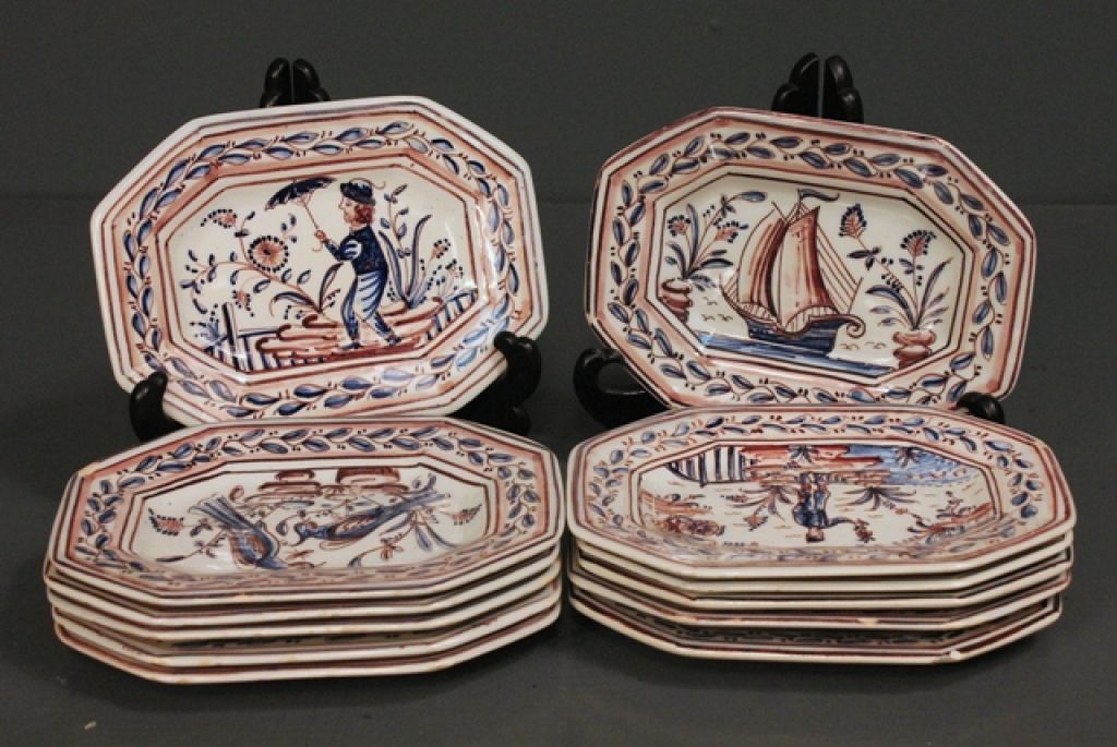Set of Twelve Hand Painted Outeiro Agueda Plates Description: Set of Twelve Hand Painted Outeiro Agueda Plates; 6 1/2" l., 4 1/2" w., some damaged Set of Twelve Hand Painted Outeiro Agueda Plates Description: Set of Twelve Hand Painted Outeiro Agueda Plates; 6 1/2" l., 4 1/2" w., some damaged