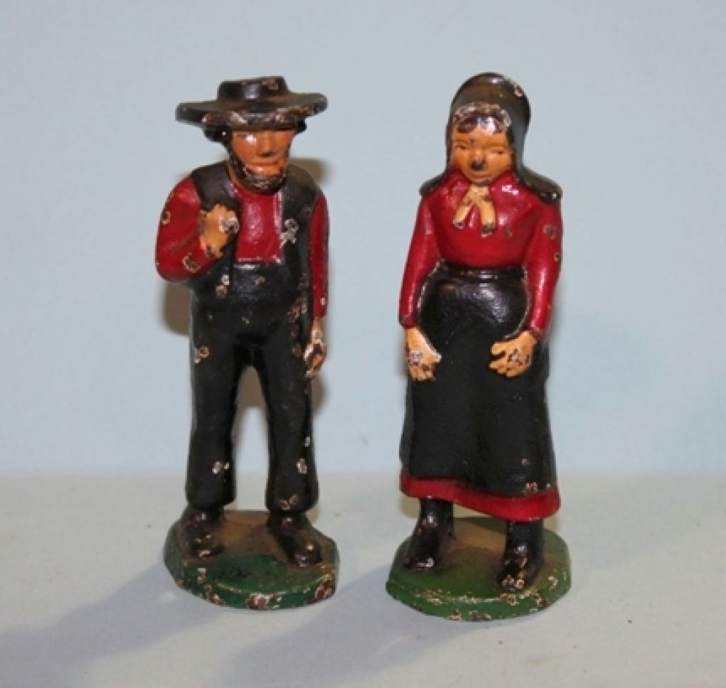 Pair of Metal Amish Figurines Description: Pair of Metal Amish Figurines, man and woman. 4" h. Pair of Metal Amish Figurines Description: Pair of Metal Amish Figurines, man and woman. 4" h.