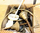 1588 Set of Four Antique Gas Fixtures Including Coleman glass shades, box of other fixtures parts; 44" h.