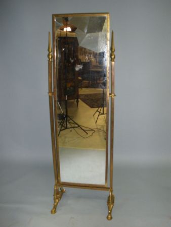 Chevel Mirror with brass frame. W. 22", h. 69-1/2" Chevel Mirror with brass frame. W. 22", h. 69-1/2"