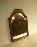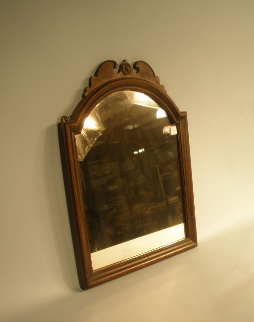 Nice Mahogany wall mirror with curved top and decorative mount. -h. 24" x w. 18 1/2" Nice Mahogany wall mirror with curved top and decorative mount. -h. 24" x w. 18 1/2"