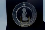 Clear glass Wall Plate with etched scene of boy praying. Clear glass Wall Plate with etched scene of boy praying.