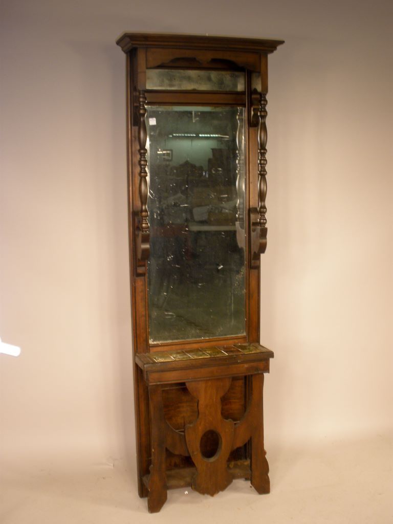 Unusual Hall Tree, with mirror and tile. 78 1/2 h 22 1/2 w 8 d Unusual Hall Tree, with mirror and tile. 78 1/2 h 22 1/2 w 8 d