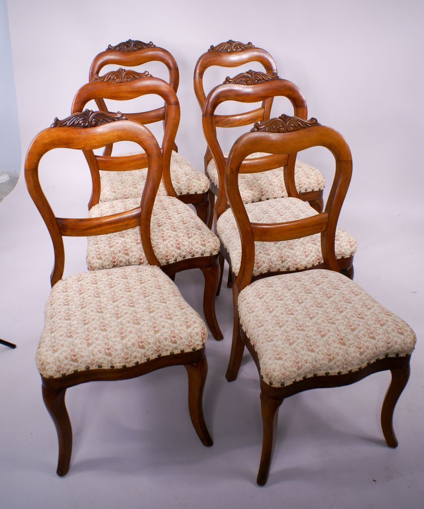 Set of 6 Walnut Chairs, with upholstered seats, 35 h 17 1/2 w 15 d Set of 6 Walnut Chairs, with upholstered seats, 35 h 17 1/2 w 15 d