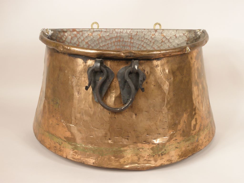 Hammered Copper Planter, half moon shape with wall hangers, could also be used on table top, 12 h 18 w Hammered Copper Planter, half moon shape with wall hangers, could also be used on table top, 12 h 18 w