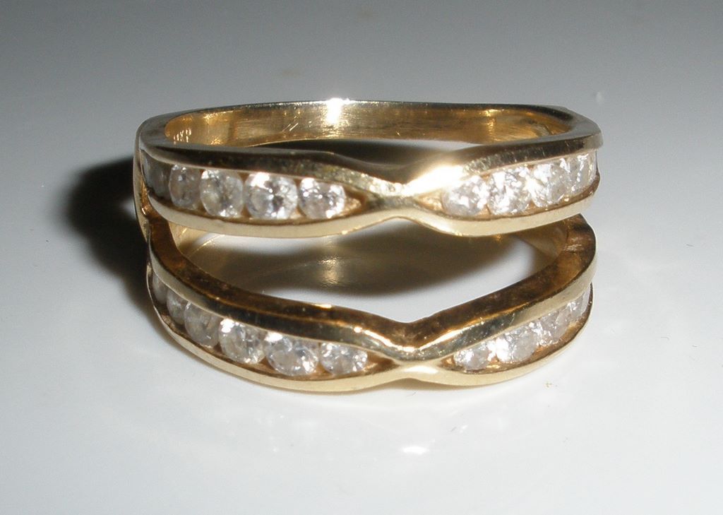 Nice 14K yellow gold insert ring with 24 diamonds, 1 ct., T/W, I-color, brilliant cut, and S12 Nice 14K yellow gold insert ring with 24 diamonds, 1 ct., T/W, I-color, brilliant cut, and S12