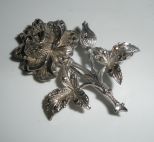 Pretty Silver sweater pin in the shape of a open rose. Pretty Silver sweater pin in the shape of a open rose.