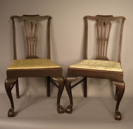 Pair Irish Chippendale chairs, circa 1900. 36 1/2"h Pair Irish Chippendale chairs, circa 1900. 36 1/2"h