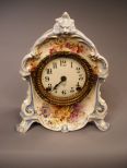 Ansonia Royal Bonn Porcelain Mantel Clock. Beautiful hand painted floral design with brass frame bezel. Hairline crack at bottom. 10"w x 12"h x 5"d Ansonia Royal Bonn Porcelain Mantel Clock. Beautiful hand painted floral design with brass frame bezel. Hairline crack at bottom. 10"w x 12"h x 5"d