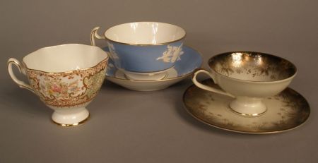 Collection of Three Porcelain Cups and Two Saucers, Alka Bavaria Cup and Saucer, cup 4 1/2" round; England Salisbury Cup 3" x 3 1/2"; Spode Copeland Cup and Saucer 4 1/2" Collection of Three Porcelain Cups and Two Saucers, Alka Bavaria Cup and Saucer, cup 4 1/2" round; England Salisbury Cup 3" x 3 1/2"; Spode Copeland Cup and Saucer 4 1/2"