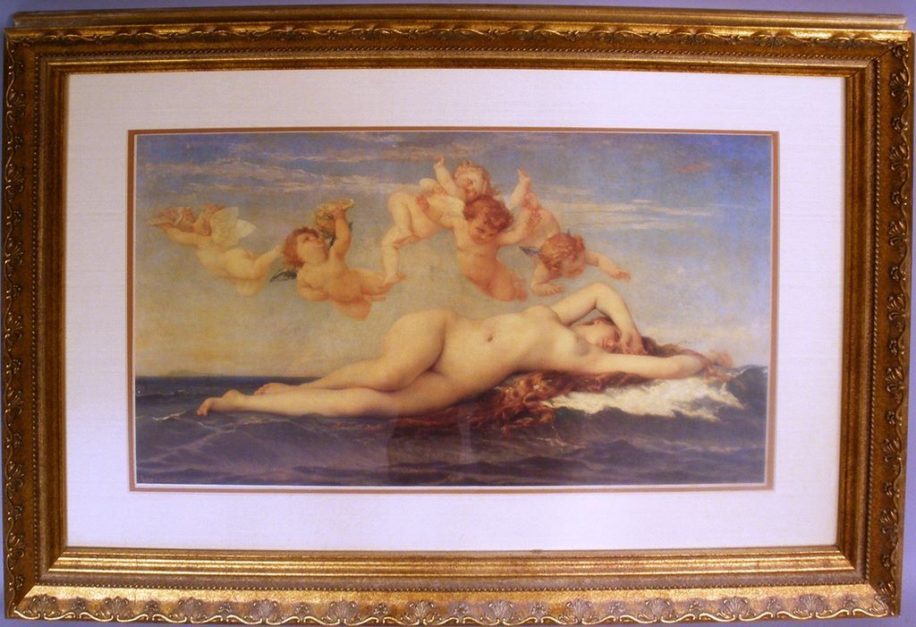 Painting of Baby Angels & Lady (framed). 29 1/4"w x 20 1/2"h Painting of Baby Angels & Lady (framed). 29 1/4"w x 20 1/2"h