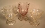 Collection of Three Assorted Items. P.G. Spooner 5"h; P.G. Spooner; w/handles 6"h; 7" Candy Jar base, lavender tint (we've not seen it before, but this may be Heisey's rare Hawthorne color) Collection of Three Assorted Items. P.G. Spooner 5"h; P.G. Spooner; w/handles 6"h; 7" Candy Jar base, lavender tint (we've not seen it before, but this may be Heisey's rare Hawthorne color)