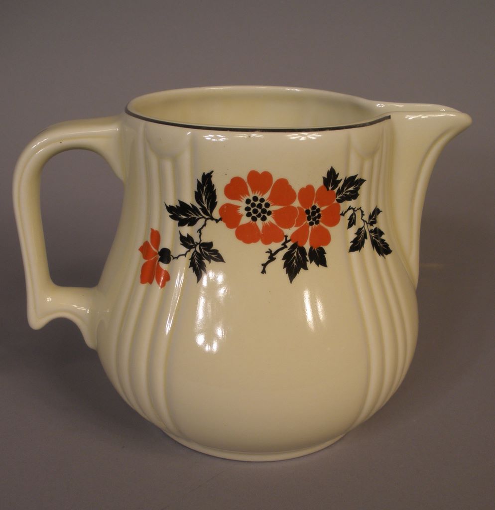 1940s Hall China #5 Radiance Shape "Red Poppy" Milk Jug, 7"h. 1940s Hall China #5 Radiance Shape "Red Poppy" Milk Jug, 7"h.