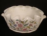 Minton "Haddon Hall" Bowl. Small oval shaped bowl w/scalloped edge. Hand painted floral design. Marked Minton., 8 1/2" oval x 4"h Minton "Haddon Hall" Bowl. Small oval shaped bowl w/scalloped edge. Hand painted floral design. Marked Minton., 8 1/2" oval x 4"h