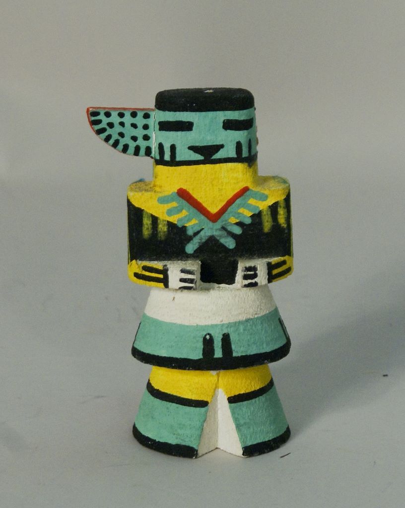 A Native American Hopi 4"h carved cottonwood "Rain Maker" Kachina doll, missing one "ear." A Native American Hopi 4"h carved cottonwood "Rain Maker" Kachina doll, missing one "ear."