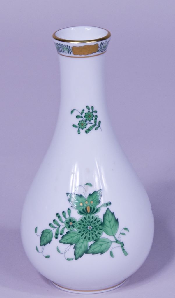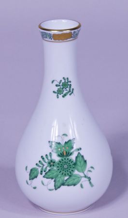 A Herend Porcelain 6 1/4"h green "Chinese Bouquet" hand painted & gilded vase. A Herend Porcelain 6 1/4"h green "Chinese Bouquet" hand painted & gilded vase.