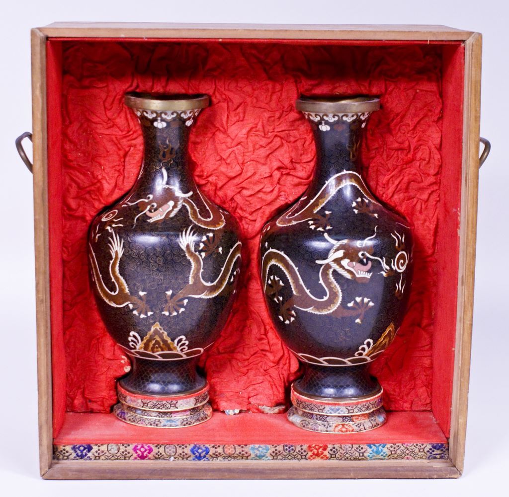 A matched pair of 9 1/4"h Chinese cloisonn A matched pair of 9 1/4"h Chinese cloisonn