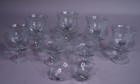 5741 Set of 7 Engraved Crystal Shrimp Icers w/Liners, V