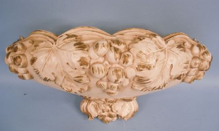 A Universal Statuary chalkware wall planter/lavabo basin, 16w x 6"h, heavily modeled with grape clusters and vines. A Universal Statuary chalkware wall planter/lavabo basin, 16w x 6"h, heavily modeled with grape clusters and vines.