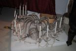 Waterford Style Chandelier. "As Is" twelve arm, now electrified, faux candles, dressed w/jewels, cut glass chains. 4'2"h x 4' dia. Waterford Style Chandelier. "As Is" twelve arm, now electrified, faux candles, dressed w/jewels, cut glass chains. 4'2"h x 4' dia.