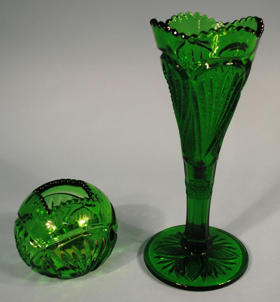 5989 Two Pieces of Heisey Emerald "Pineapple & Fan":