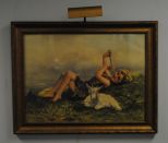 Print of Young Boy Playing Flute with Goat Beside Him, signed Alfred Schwarz. 36 1/2" w 28 1/2" h Print of Young Boy Playing Flute with Goat Beside Him, signed Alfred Schwarz. 36 1/2" w 28 1/2" h