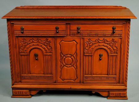 English 20th Century Oak Buffet. Two drawers with tear drop pulls over two doors separated carved panel. Nice carving and rope carving down each side. 51"w 20"d 36"h English 20th Century Oak Buffet. Two drawers with tear drop pulls over two doors separated carved panel. Nice carving and rope carving down each side. 51"w 20"d 36"h
