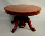 19th Century Mahogany Empire Dining Table. Top has gadrooning on the edge, carved claw Feet. 52 1/2" round, 2-13" leaves (no skirt) 31"h. 19th Century Mahogany Empire Dining Table. Top has gadrooning on the edge, carved claw Feet. 52 1/2" round, 2-13" leaves (no skirt) 31"h.