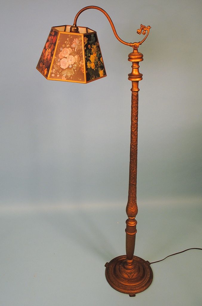 20th Century Iron Floor Lamp painted gold with paper shade. 57 1/2"h 20th Century Iron Floor Lamp painted gold with paper shade. 57 1/2"h
