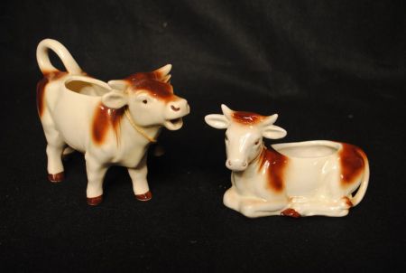 6208 Two Hand-Painted Cows, Sugar and Creamer.