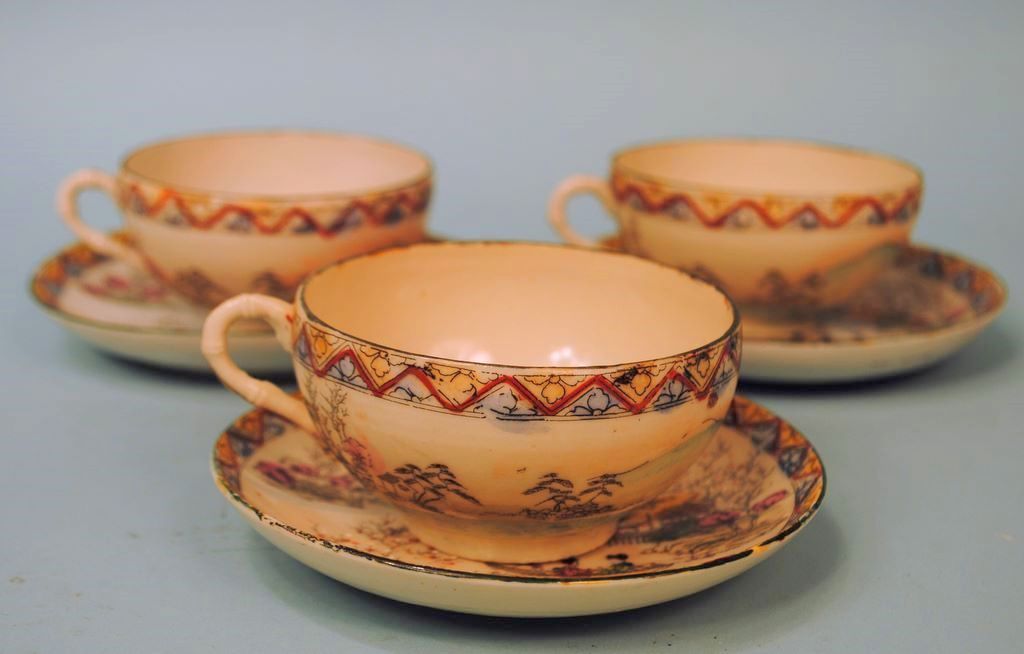 6281 Four Saucers and Three Satsuma Porcelain Cups