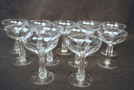 6282 Set of Eleven Hollow Stem Clear Champagne Glasses