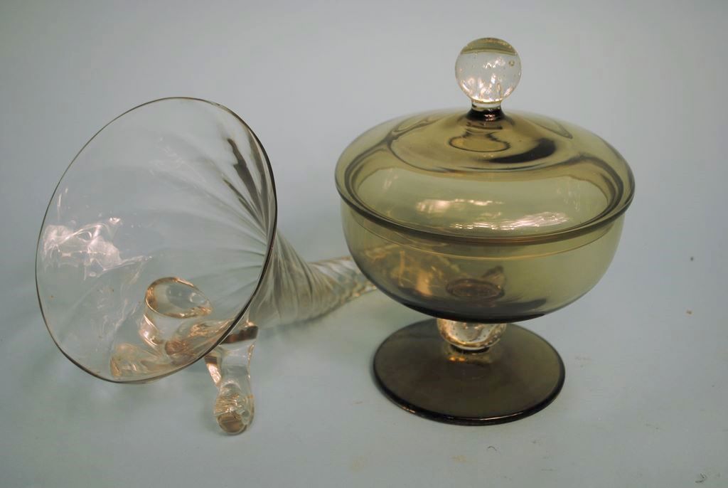 6285 Glass Cornucopia and Glass Covered Candy Dish