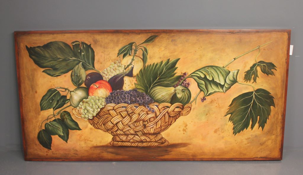 Fruit in Basket, Painted on Board; 72" w., 36" h. Fruit in Basket, Painted on Board; 72" w., 36" h.