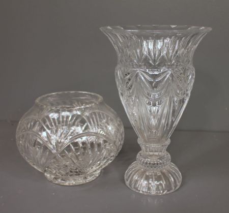 Crystal Bud Bowl (6" h., 8 1/2" dia.) and Large Crystal Vase (12" h., 8" dia.) Crystal Bud Bowl (6" h., 8 1/2" dia.) and Large Crystal Vase (12" h., 8" dia.)
